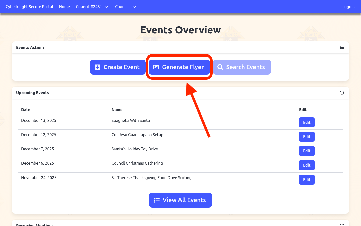 Step 1: Navigate to Events Overview and click “Generate Flyer”